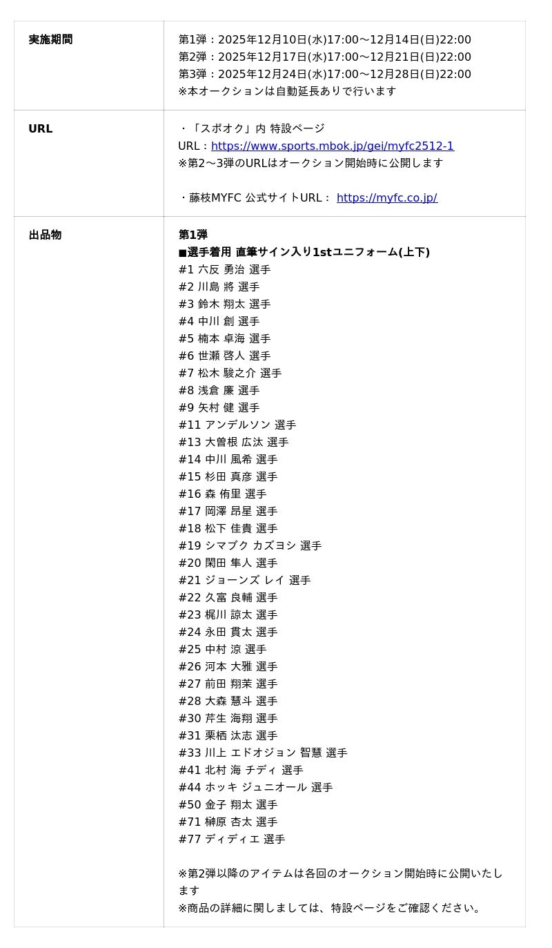 【藤枝MYFC 2025 SEASON THANKS UNIFORM AUCTION 概要】