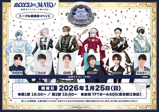 株式会社コンテンツシード(本社:東京都品川区、代表取締役:大塚 則和)は、2026年1月25日(日)にTFTホール500にて『BOYS be MAID!』香騎学園メイドボーイ部 部活動報告会~なんでもない日日おめでとう~を開催いたします。