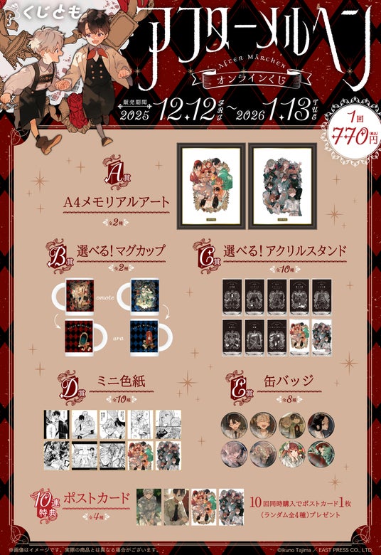 株式会社ブリッジ(本社:東京都千代田区 代表取締役社長:加藤 勝)は、運営するオンラインくじサービス「くじとも」より、『アフターメルヘン』オンラインくじを、2025年12月12日(金)18時より販売します。