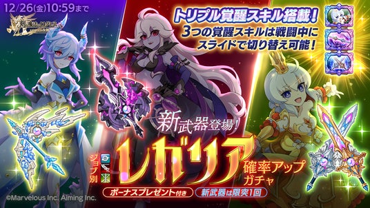 株式会社マーベラス(代表取締役社長:照井 慎一/所在地:東京都品川区)は、スマートフォン向け本格オンラインRPG『剣と魔法のログレス いにしえの女神』において、2025/12/10(水)にイベント「クリスマス・オブ・セレスティアル -in天界エリア-」の開催、および「ジョブ別 ウィンタービッグ3ガチャ」の販売を含むアップデートを行ったことをお知らせいたします。