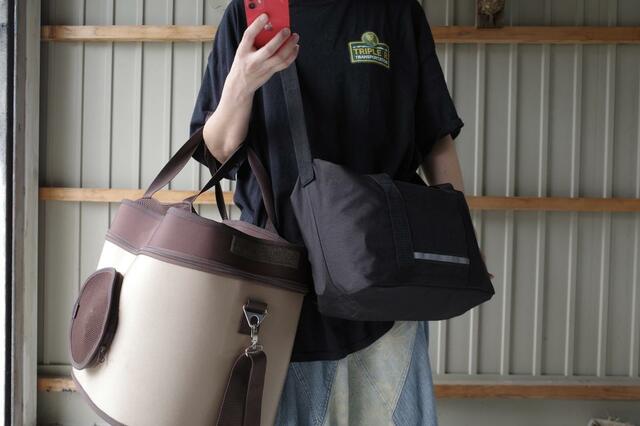 2Lのペットボトボトルを横にしてちょうど入れられるサイズで、足りない荷物を追加できるように少し余裕を持った容量に設計されていました。