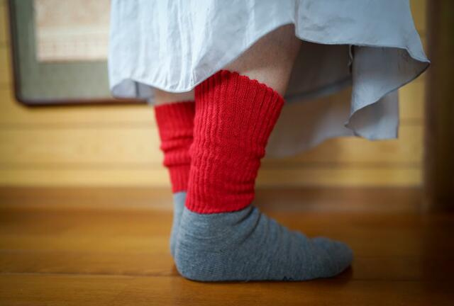 差し色がポイントのあったか靴下。これひとつあるだけで、コーディネートの幅が広がります。