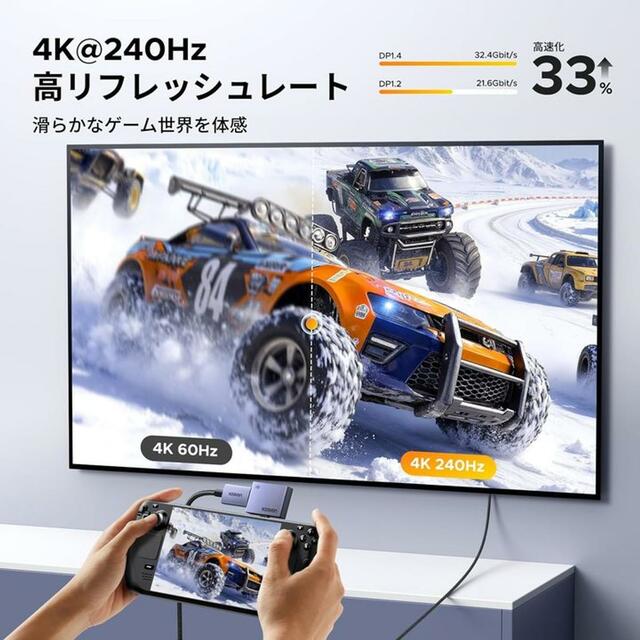 8K@60Hzの高解像度&4K@240Hzの高リフレッシュレートで、高性能映像出力を実現