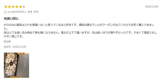 2025年11月28日、【KYOGOKU PROFESSIONAL】より発売されました、「KYOGOKU バイオスリープ ナノシルクケラチンピロー」が楽天市場の、「枕・抱き枕ランキング」で1位を獲得いたしました。