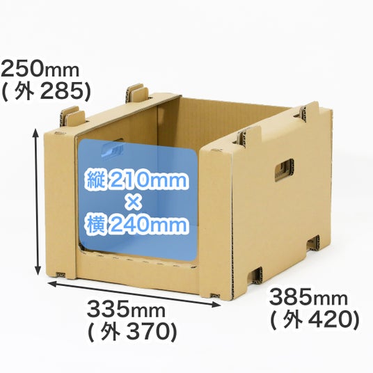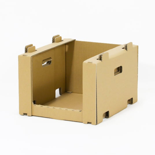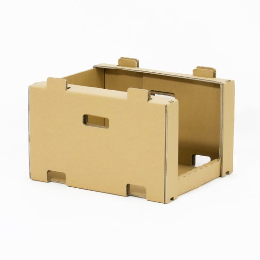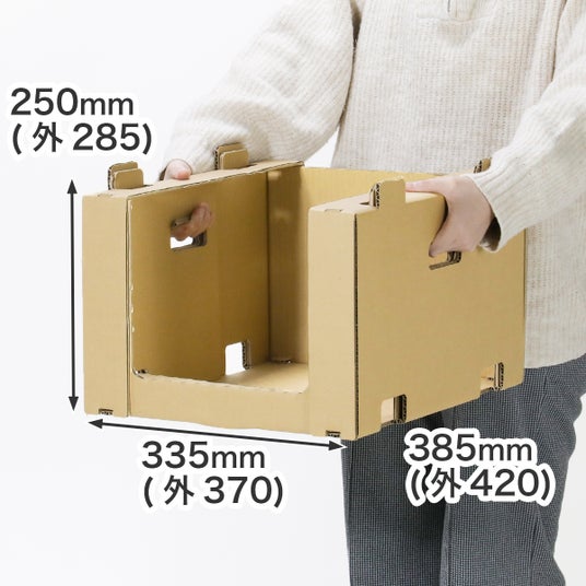 通常のダンボールより強い材質(K6/中芯180g)を採用し、強度を確保しながらも軽量・低コストを実現。解体も簡単に行うことができ、不要になった際は古紙回収に出すことが可能です。