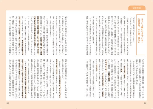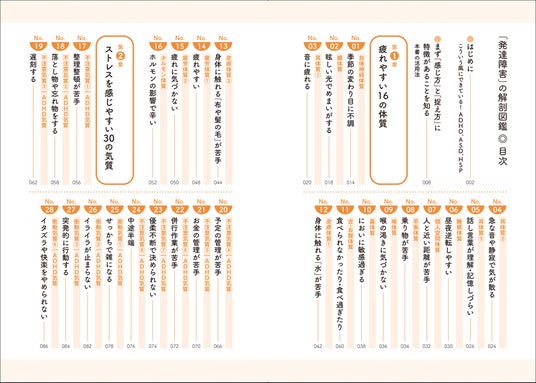 この本は、「神経発達症群(発達障害)」について、それぞれの病名よりむしろ、「体質」と「気質」の観点からその症状を成り立たせている特性に注目し、より細分化して60に分類、それぞれの特性に対する理解や接し方を解説していきます。