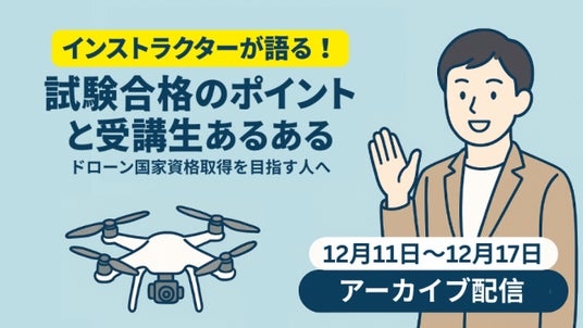 中京テレビドローンスクール「そらメディア」(運営:中京テレビ放送株式会社)は、2025年10月22日(水)に開催したオンラインウェビナー「インストラクターが語る!試験合格のポイントと受講生あるある」のアーカイブ配信を、2025年12月11日(木)~12月17日(水)の期間限定で公開いたします。