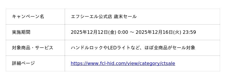 12月12日(金)より、エフシーエル公式店にて人気製品が最大40%OFFとなるセールを実施します。