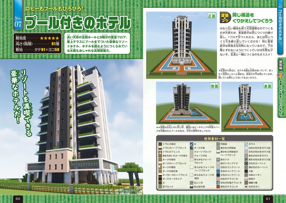 設計図と解説を参考に、まねするだけでカッコいい建物をつくれる人気シリーズ最新作! 1冊がまるごとワンテーマでまとまっており、モダンな建築物をマイクラで再現できる!