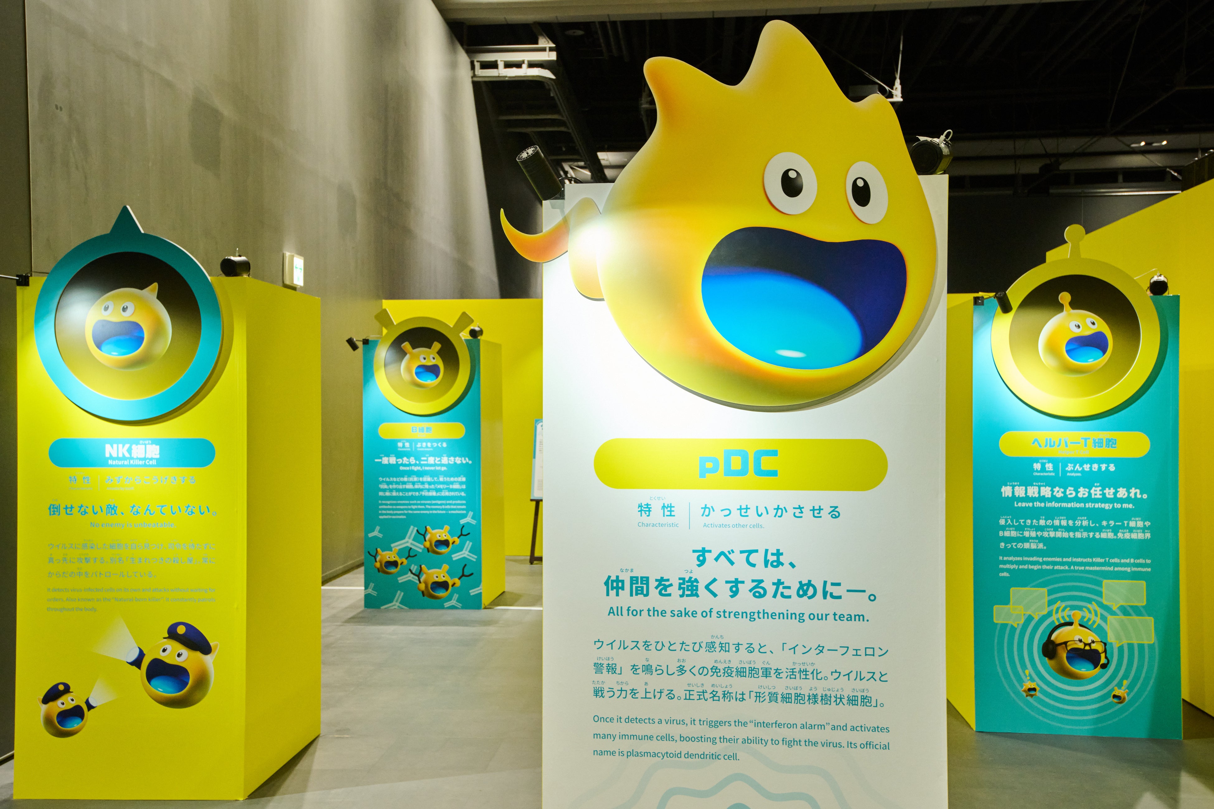 ・免疫細胞の解説パネルを通じて、それぞれの細胞の特徴や機能を紹介します。