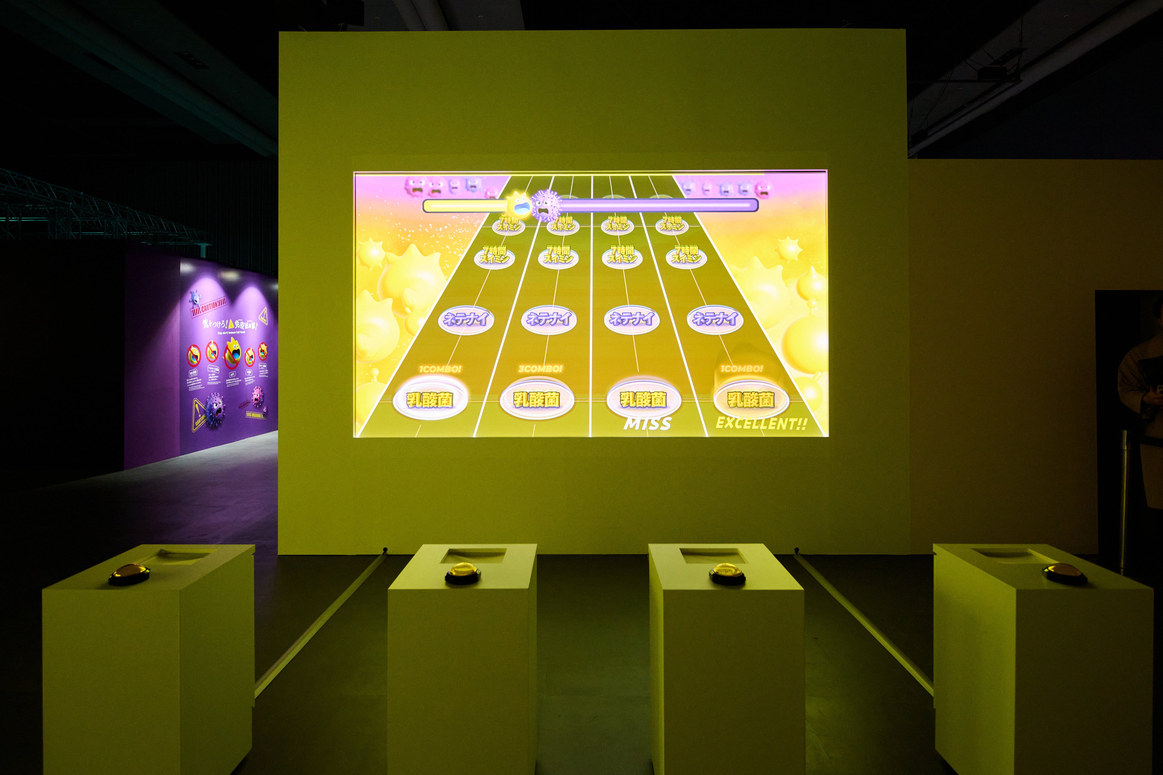 <免疫細胞軍とウイルス連合軍に分かれて、リズムゲームで対決!>