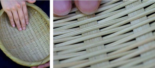 また使用されている竹ヒゴは、平らではなく厚みを持たせたカマボコ状。これにより水切れが良く、そばを盛ったり、野菜の水切りに使ったりと、台所でも大活躍します。