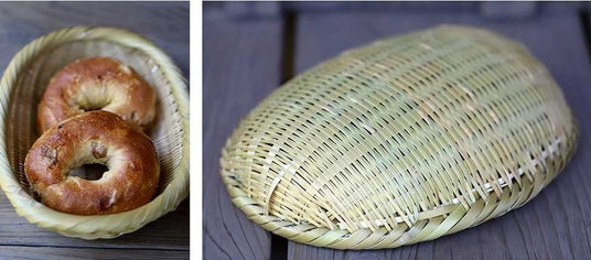 万能竹籠「真竹楕円パン籠」が販売再開。竹表皮を薄く剥いだ「磨き」の竹ヒゴで編み上げられた美しさに加え、パンや果物の盛り付けだけでなく野菜の水切りにも使えるという実用性を両立しています。