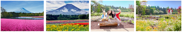 例年4月中旬~5月にかけて残雪の美しい世界遺産・富士山と、自然あふれる広大な場内の敷地いっぱいに咲き誇る芝桜との共演が楽しめる春の風物詩「富士芝桜まつり」を開催。夏から秋にかけて季節の花々が織りなす美しい絶景に出会える庭園です。英国生まれの人気キャラクター「ピーターラビット(TM)」の世界観が楽しめる「ピーターラビット(TM) イングリッシュガーデン」は、首都圏最大級の英国式庭園で、約300種類の草木や花々をご覧いただくことができます。さらに、味はもちろん見た目も鮮やかなメニューが楽しめるカフェ、絵本の世界を体感できるギャラリー、約8mの高さから庭園越しに富士山を見渡すことができるガーデンタワーなど、子どもから大人の方までピーターラビット(TM)の世界観を存分にお楽しみいただけます。