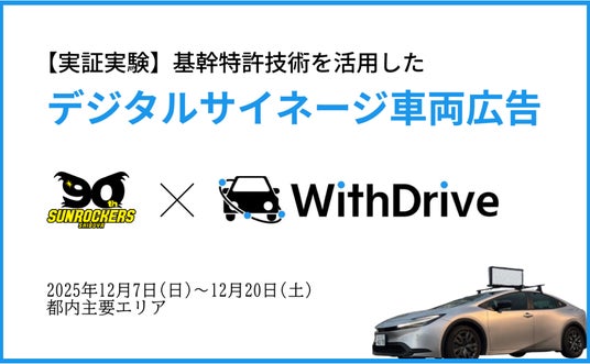 モビリティ広告プラットフォーム『WithDrive』を運営する株式会社Essen(本社:神奈川県川崎市、代表取締役:橘 健吾、以下「Essen」)は、B.LEAGUE所属のプロバスケットボールクラブ「サンロッカーズ渋谷」と連携し、デジタルサイネージ車両広告を活用した実証実験を、2025年12月7日(日)~20日(土)の期間で実施中です。