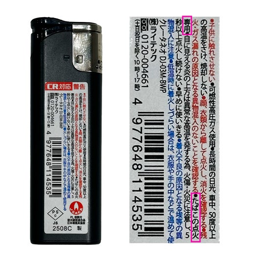 一般的に、使いきりライターの多くは、指が火元に近づきやすい構造上「たばこの点火専用」として設計されています(※用途の定義はメーカーによって異なります)。そのため、キャンドルのように火元が深い位置にあるものへの着火には適していない場合があります。実際、ライテックの使いきりライターには、「たばこの点火専用」と明記し販売してきました。