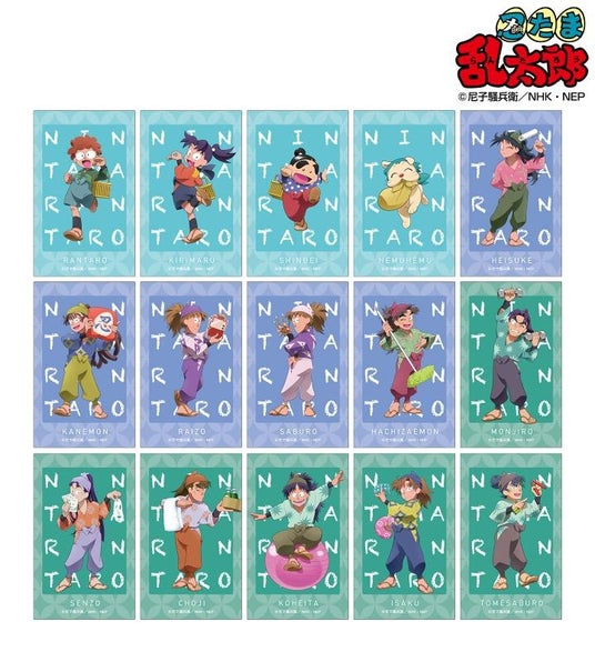 猪名寺乱太郎、摂津のきり丸、福富しんべヱ、ヘムヘム、久々知兵助、尾浜勘右衛門、不破雷蔵、鉢屋三郎、竹谷八左ヱ門、潮江文次郎、立花仙蔵、中在家長次、七松小平太、善法寺伊作、食満留三郎の描き下ろしイラストをクリアカードに仕上げました。