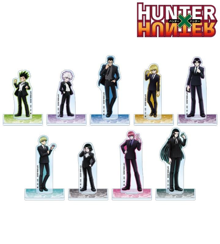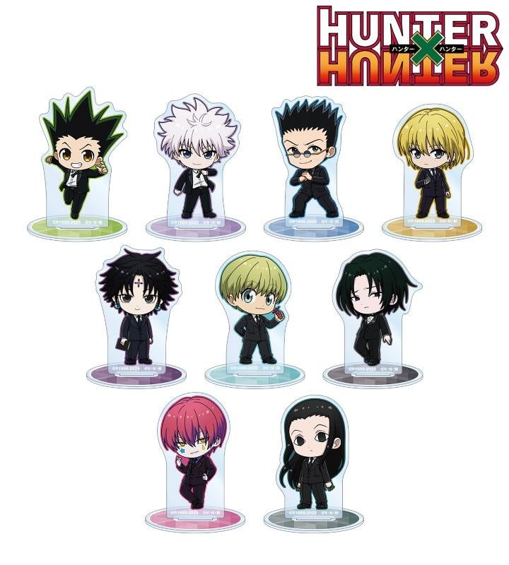 ゴン、キルア、レオリオ、クラピカ、クロロ、シャルナーク、フェイタン、ヒソカ、イルミの描き起こしちびキャライラストをメインにデザインし、アクリルスタンドに仕上げました。