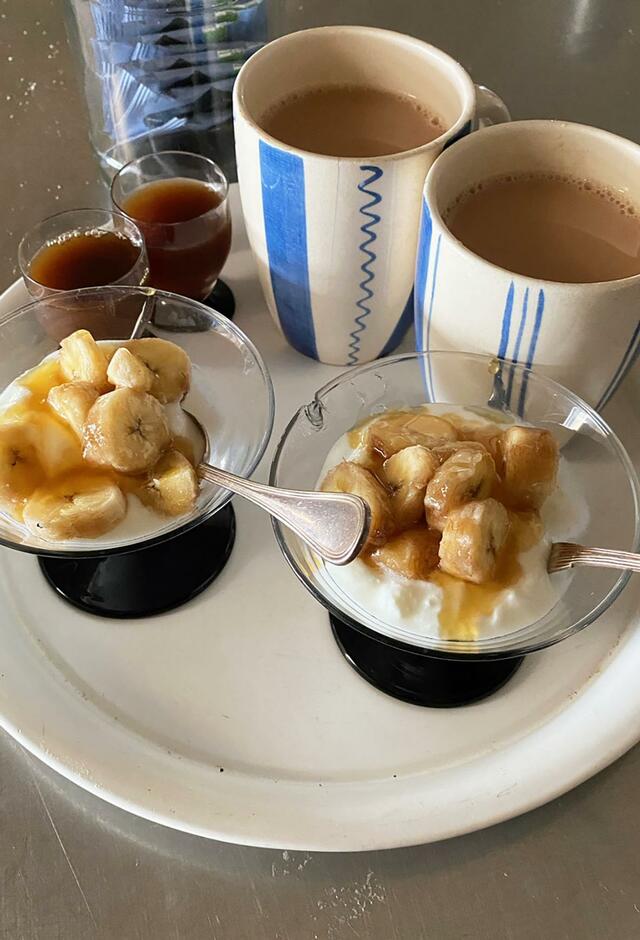 ヨーグルト+バナナ、今日の元気、ミルクティ。