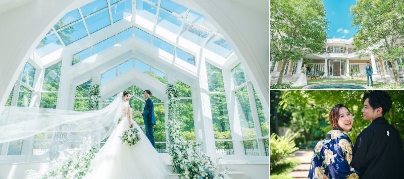 撮影時間内で複数の背景を自由に選べる撮り放題プランを99,000円から提供し、衣装サロンでは8,000着以上のラインナップから最新のインポートドレスも選択可能です。挙式を執り行う本格的なチャペルや貸切邸宅を舞台に、結婚式さながらのフォトウエディングや、結婚式を実施されるカップルには、結婚式当日は時間的に難しいライティングやポージングにもこだわる前撮りを、心ゆくまでお楽しみいただけます。