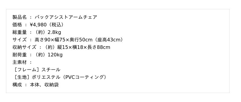 長時間でも疲れにくい快適チェア「バックアシストアームチェア」を、キャンプやスポーツ観戦、テレワークなど、様々なアウトドアシーンやご家庭にてぜひご活用ください。