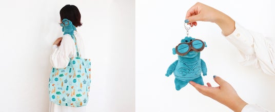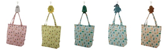エコバッグを肩にかけるとマスコットがちょこんとのる、見た目も楽しいデザインです。エコバッグには、図鑑風デザインがプリントされています。エコバッグとして使わないときは、たたんでカバーに収納するとぬいぐるみのように◎キーフォルダーが付いているので、アクセサリーとして他のバッグにつけるのもおすすです。