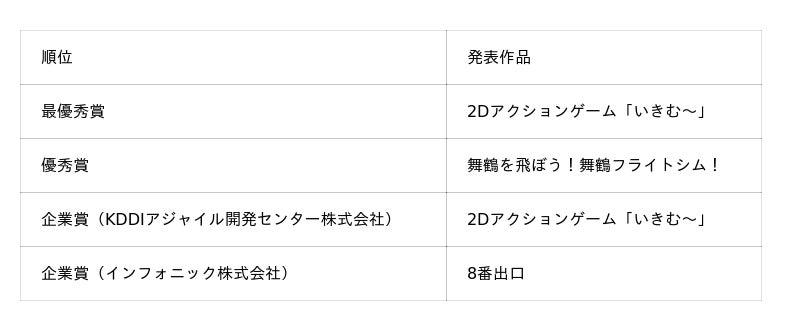 参加者からは、今回のコンテストを通じて、「色々な作品を見れて良かったです」、「周りの方々のクオリティは素晴らしかったです」、「審査員の方々に見ていただき、良い経験になりました」等の感想が寄せられました。