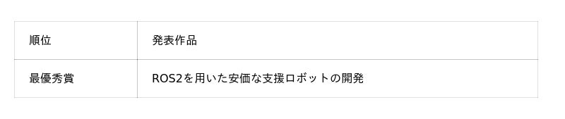 ものつくり部門には1作品の応募があり、ROS2を利用した自動制御ロボットが披露されました。発表者が実機を会場に持参し、会場内で、デモンストレーションを行いました。