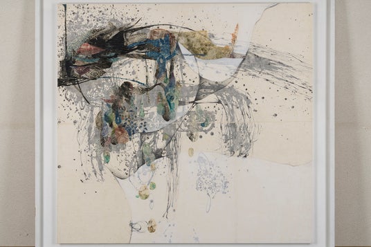 I. 初期の抽象と版画表現の変遷現在のミクストメディア作品を支える、初期からの抽象表現や一版多色刷りなどの高度な版画技術に焦点を当てます。 愛用の道具類や版画のモチーフも参考展示。