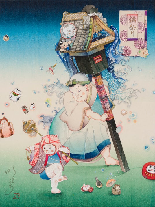 猫祭り 2020年 ミクストメディア 40×30cm 個人蔵