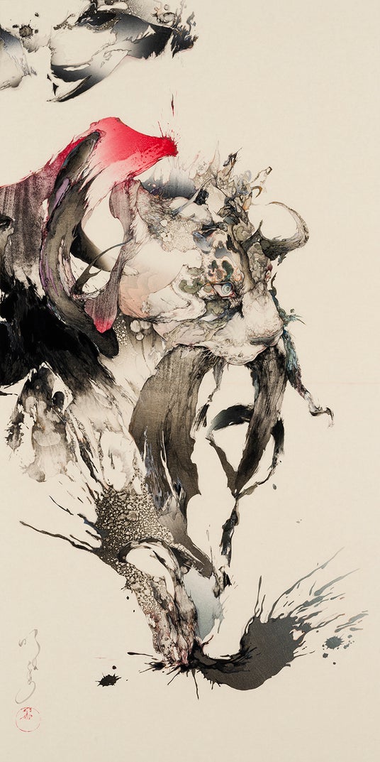 今回の展覧会は、一昨年に制作した六曲一隻屏風《黒雲妖炎龍図》の対となる新作《夢幻対峙之図》を一双屏風として初公開。また、過去の代表作ならびに近年の新作約60点を展示し、入江作品の世界観をより深くご堪能いただける内容となっております。どうぞご期待ください。