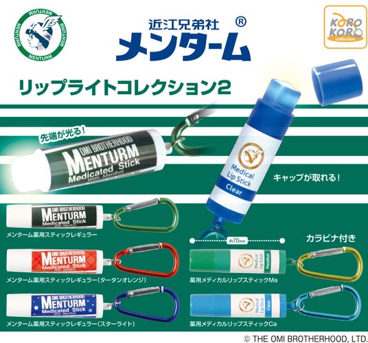 薬局で一度は目にしたことがある近江兄弟社の「メンタームリップ」がピカッと光るライトになってカプセルトイに登場!