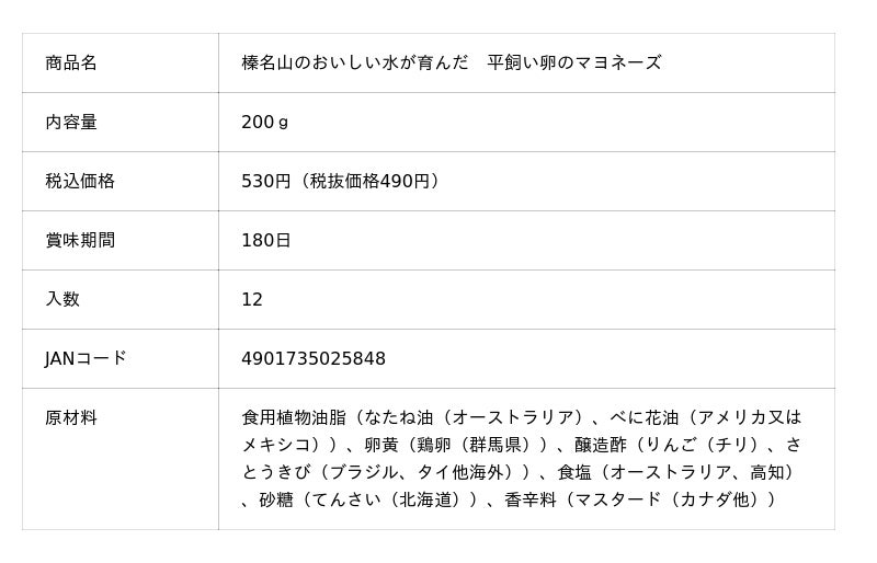 榛名山のおいしい水が育んだ 平飼い卵のマヨネーズ 200g