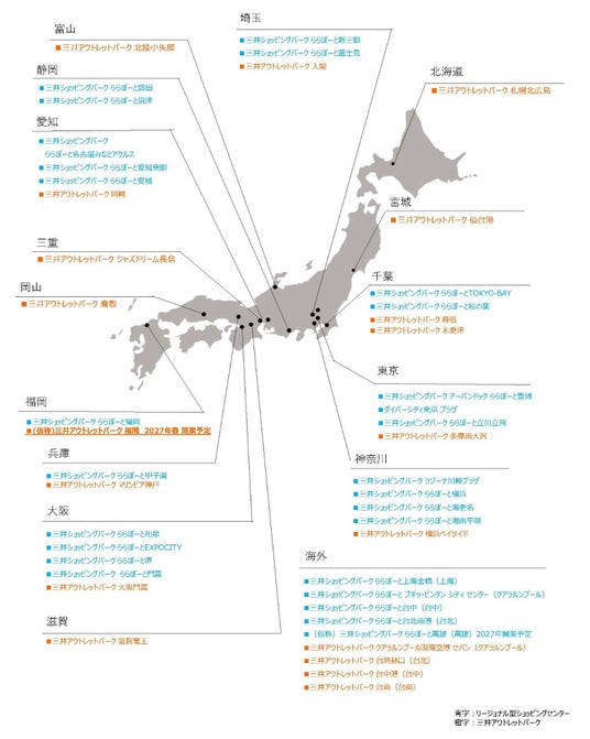 三井不動産のリージョナル型ショッピングセンター・アウトレットモール(2025年12月時点)