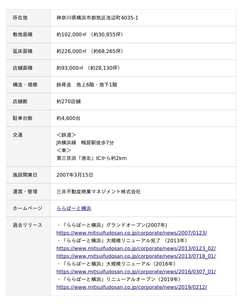 ららぽーと横浜は、2007年、NEC横浜事業場跡地に神奈川県最大級の施設として開業しました。
