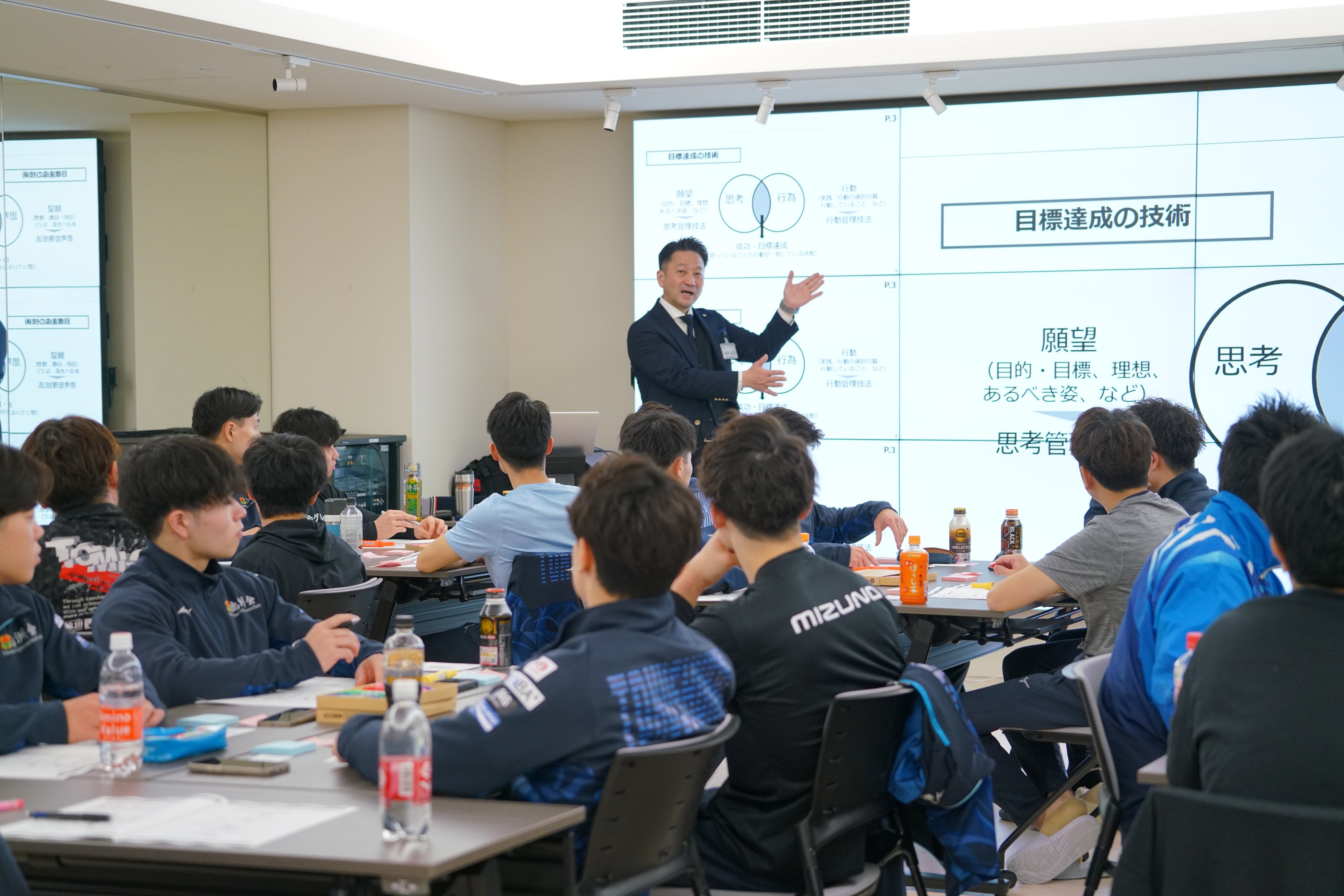また次に目指す大きな目標は何かをワークシートに描き、仲間同士で発表を行います。お互いが目指しているものについてコミュニケーションを取り合うことで、相互理解が進み、チーム力強化に繋がります。
