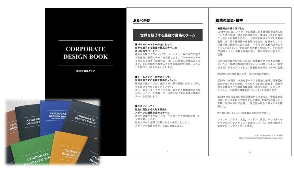 「コーポレートデザインブック」はこれまで約1000社の企業で制作・導入をされてきた企業理念や経営方針などをまとめた組織変革のための1冊の本です。企業経営で培われたこのノウハウをスポーツの現場に転用することで、個人の才能のみに依存しない、組織としての持続的に「勝ち続ける文化」の構築を目指します。