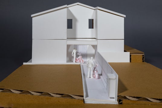 居住スペースをすべて2Fに置くことで、バイク用ガレージと居住性を両立した部屋となります。