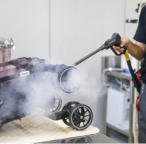 2、高温スチームによる徹底殺菌洗濯機で洗えない大型商品は、160℃の高温スチームで1点ずつ丁寧に手作業で殺菌。