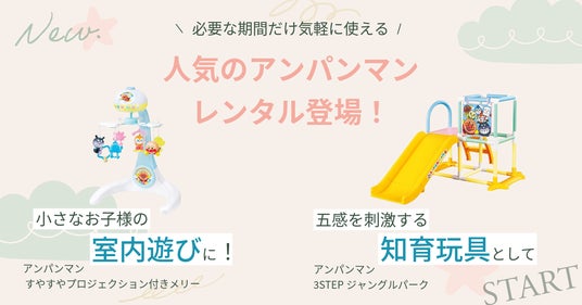 株式会社ベビーリース(本社:千葉県松戸市、代表取締役:山崎修太郎)が運営する創業54年のベビー用品レンタル専門店「ナイスベビー」は、2025年12月1日より、人気のアンパンマンブランドの玩具2商品「アンパンマン 3STEPジャングルパーク」と「アンパンマン すやすやプロジェクション付きメリー」の新規レンタルサービスを開始いたしました。天候に左右されず室内で運動遊びができるジャングルジムと、赤ちゃんの寝かしつけをサポートするプロジェクション付きメリーを、必要な期間だけ気軽に試すことができます。