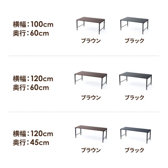 ノートPC+周辺機器、A4書類、コーヒーまで置ける幅120cmの余裕がありながら、奥行45cmで圧迫感を抑えたサイズ設計。リビングにもワークスペースにもなじみ、作業台・学習机・ゲーミング用途まで幅広く活躍します。また、ブラックと木目の2種類から部屋の雰囲気にあった種類を選ぶことができます。