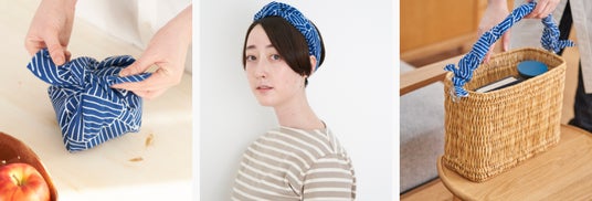 手ぬぐいの魅力は、洗うほどにやわらかな手触りに変わっていくこと。色と柄が豊富なこと。長く使える日用品であり、生活のなかの小さな工藝品です。お弁当や手土産から、日本酒の四合瓶やワインボトルのようなかたちのものまで包めるのも手ぬぐいならでは。多用途にくりかえし使えて、とてもサスティナブル。暮らしの様々なシーンで活躍してくれる暮らしの道具です。