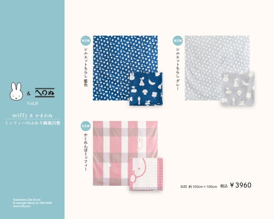 株式会社かまわぬ(代表取締役:加藤一宏、本社:東京都渋谷区)は、「miffy & かまわぬ 暮らしの文様 vol.9」を、2025年12月18日(木)より、かまわぬ直営各店、かまわぬ公式オンラインストア(https://kamawanu-store.jp/)、かまわぬ楽天市場店、全国一部取扱店で販売を開始します。