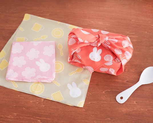ミッフィーのちいさな風呂敷 全6種類 各種 1,100円(税込)さくらんぼや小鳥、お花などの親しみのあるモチーフに、ミッフィーをワンポイントで添えたステッチ風デザイン。 お弁当包みはもちろん、ハンカチとして、首元や頭に巻いてバンダナのようにも使える、装いのアクセントにもなるアイテムです。リーズナブルながらも日本国内の職人が生地に1色ずつ丁寧に染め上げるハンドプリント(手捺染)仕上げ。年末年始や歓送迎の贈りものにも選びやすい一枚です。