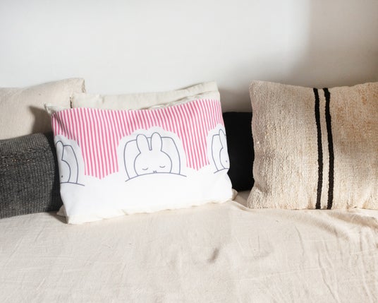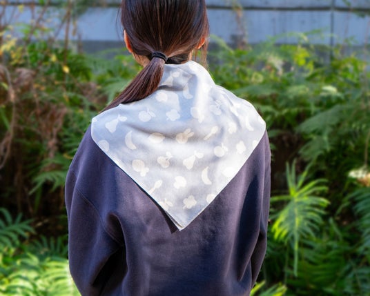 ミッフィーのふわり綿風呂敷 全3種類 各種 3,960円(税込)シリーズでは初となる大判サイズの風呂敷。ほどよい透け感としなやかな風合いの生地は結びやすく、荷物をまとめたり、さっと結んでサブバッグにしたり、肌寒い時にはスカーフ代わりにと、多用途に活躍します。ソフトな質感から生まれる美しいドレープは二人掛けのラウンドテーブルやコーヒーテーブルのクロスにもぴったり。大きいからこそデザインはあえてシンプルに、落ち着いた色合いで上品に仕上げました。さりげないミッフィーのモチーフが可愛らしいアクセントに。こちらも小風呂敷と同じく、職人によるハンドプリントで丁寧に染められています。