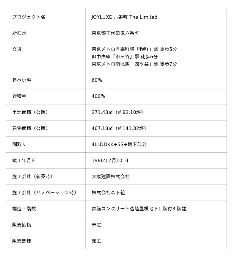 株式会社大藤不動産(所在地:神奈川県横浜市 代表取締役社長:戸熊 敦哉 以下、大藤不動産)は、J-Premium Renovationプロジェクトにおいて、リノベーションで新しく生まれ変わった邸宅「JOYLUXE 六番町 The Limited」を販売いたします。