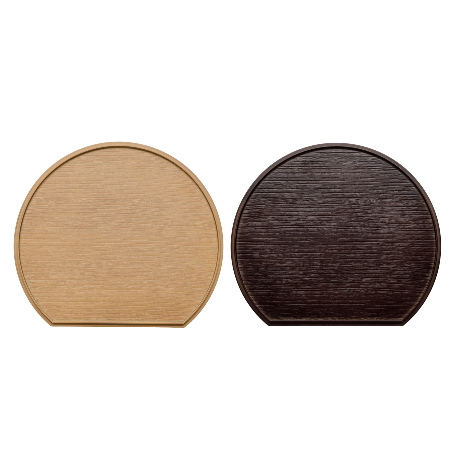 「リバーシブル半月膳」は、料理に合わせて表裏で異なる色を使い分けられる便利さが魅力です。