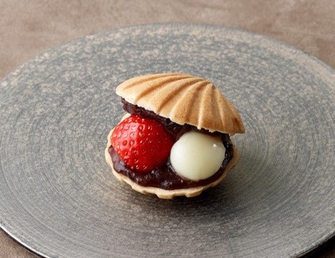 三重県産いちご「かおり野」をまるごと一粒包み込んだ、貝モチーフの最中です。やさしい甘さの粒あんに、いちご、真珠をイメージした白玉が並び、志摩ならではの物語を感じる和スイーツに仕上がりました。