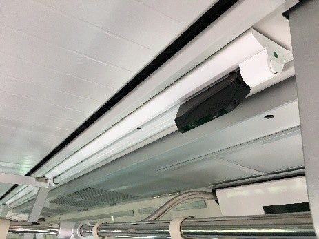 車両内のセキュリティ強化を目的に「LED蛍光灯一体型防犯カメラ」を当社所属の全車両に設置しています。4G回線を使用してリアルタイムで画像を送信する機能の活用により、運輸司令所などで車内の状況を把握し、迅速な対応が可能です。