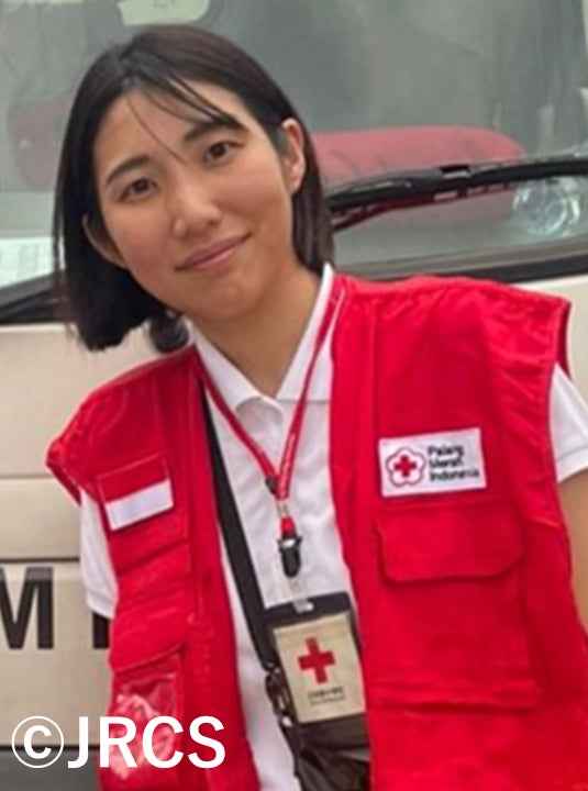 2017年4月より大阪赤十字病院の助産師・看護師として勤務。2025年11月から日赤インドネシア現地代表部(ジャカルタ)に派遣され、インドネシア赤十字社と協働して、同国内での防災強化事業に取り組んでいる。本事業では、日赤の防災教育のノウハウなども活かして学校の避難計画の策定や生徒向け防災教育プログラムの研修、地域の防災ボランティアの育成や家庭訪問による住民への啓発、救急法の講習など、人々が地域の力で災害に備え、緊急時に対応するための支援を進めている。